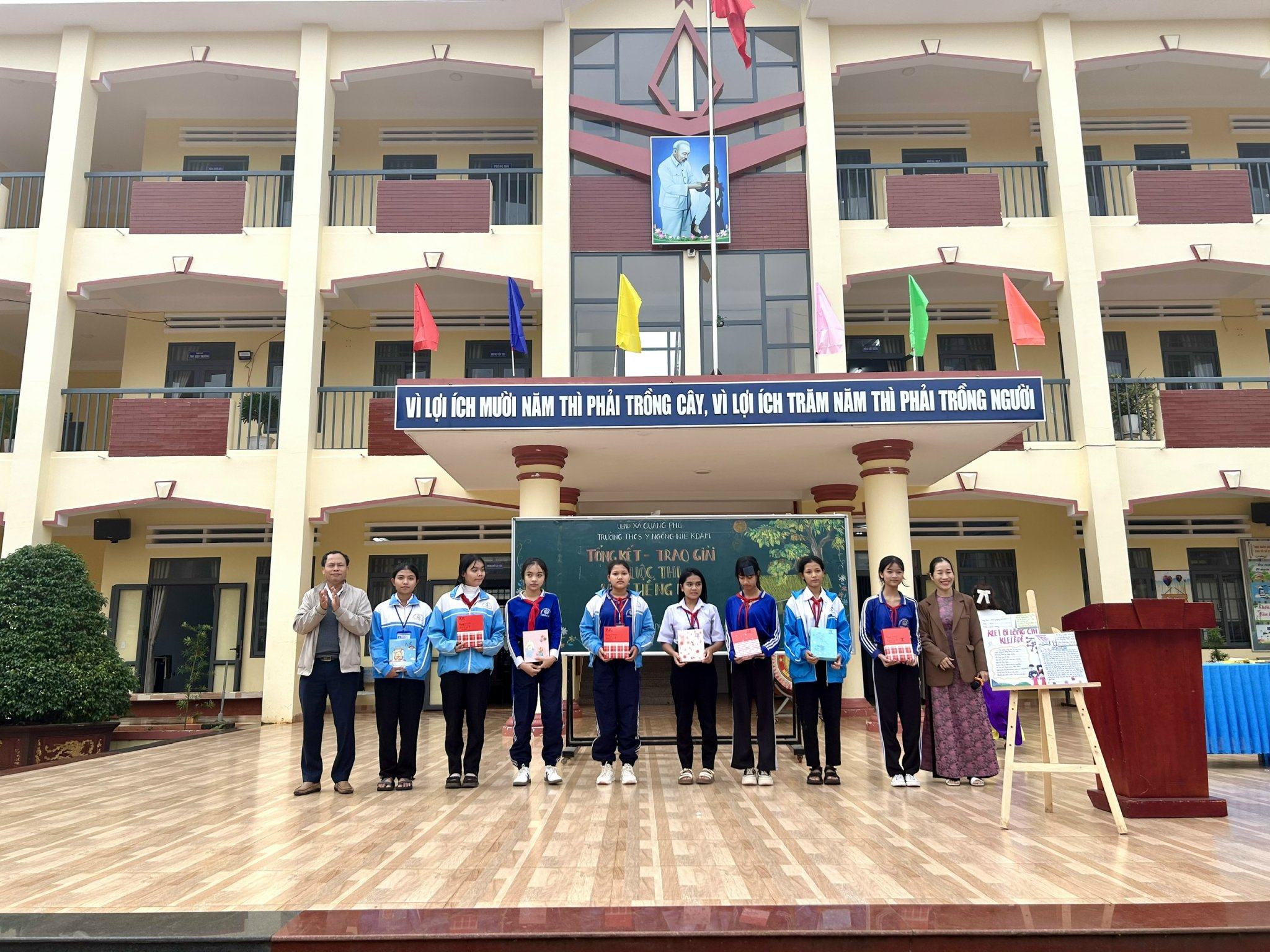 🌸 Sáng thứ 2 ngày 8 tháng 12 năm 2025 nhà trường đã tổ chức buổi tổng kết, công bố và trao giải cho những bài viết xuất sắc trong Hội thi viết Tiếng Êđê.