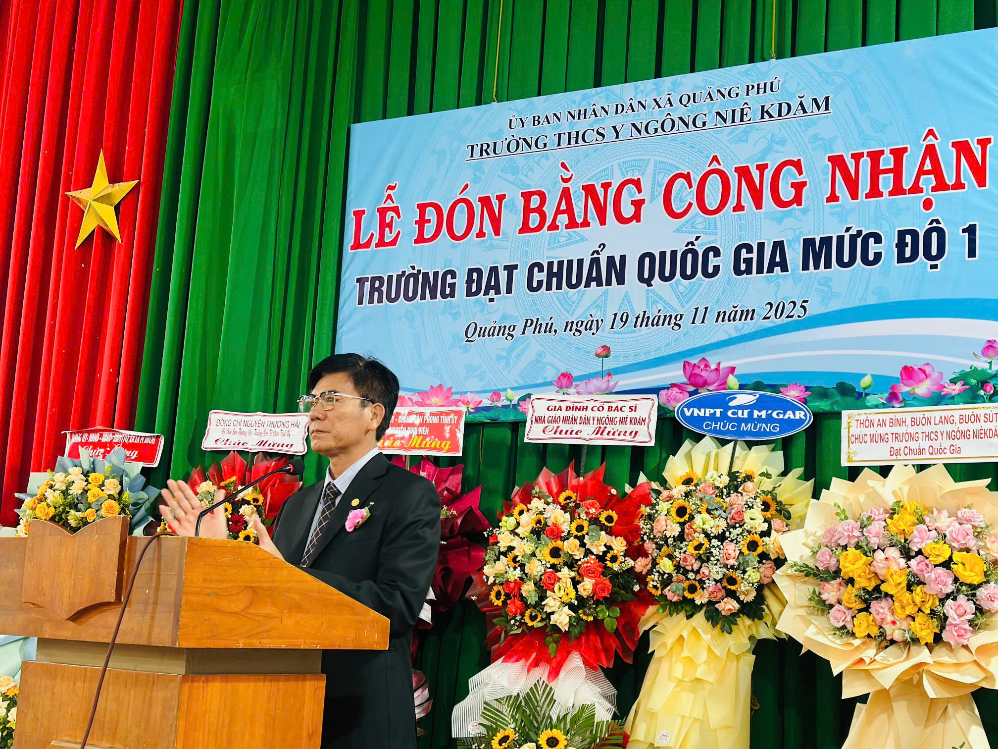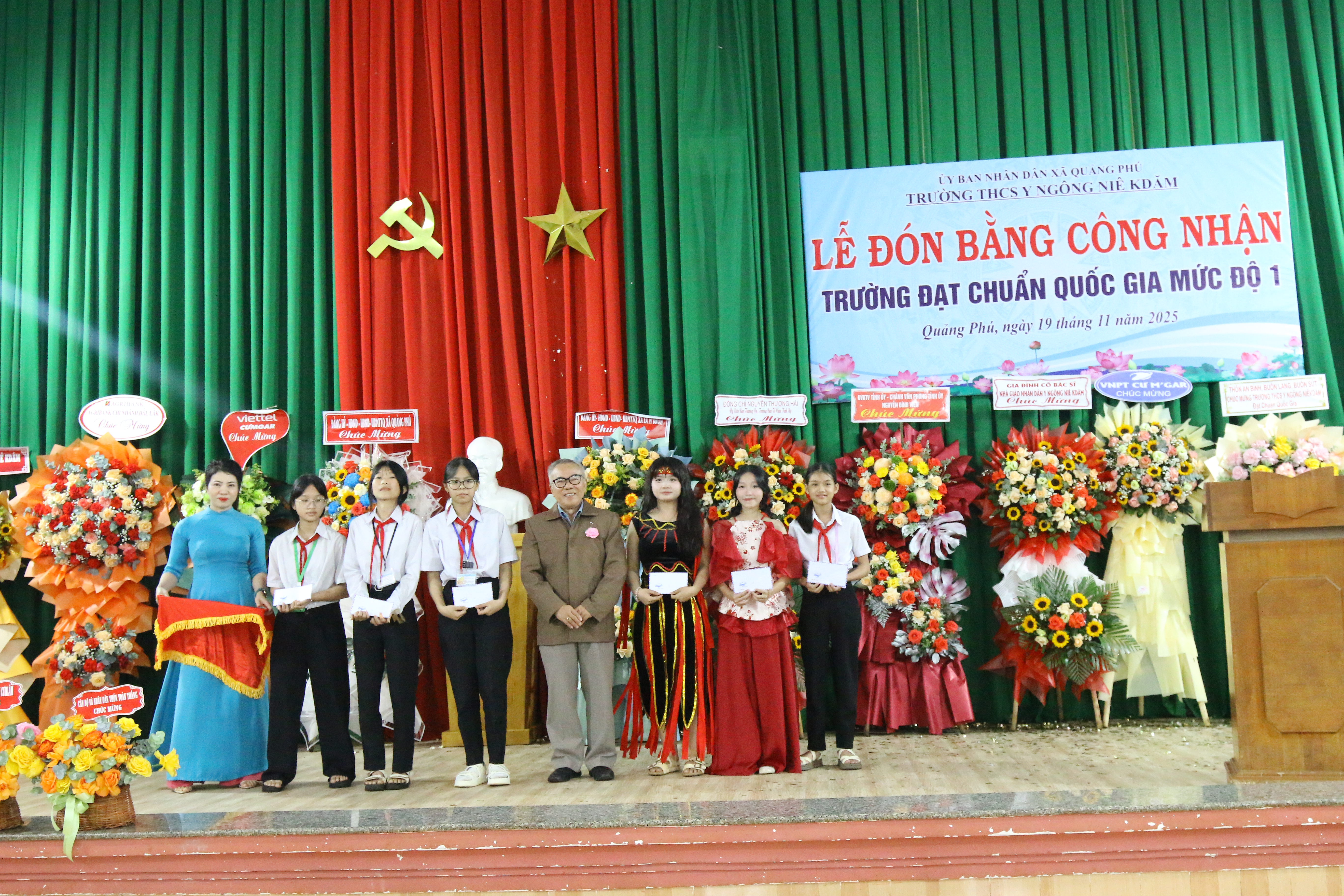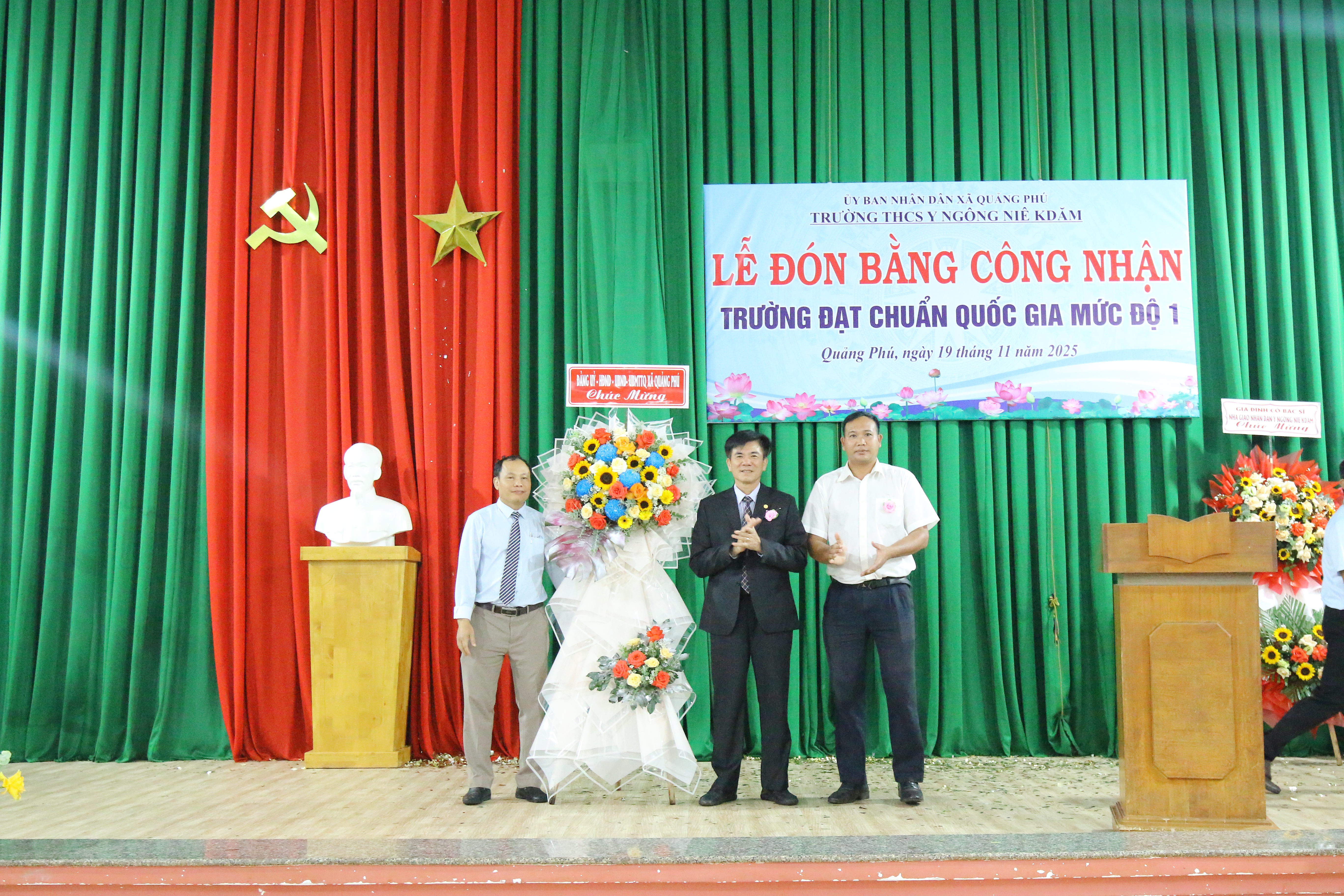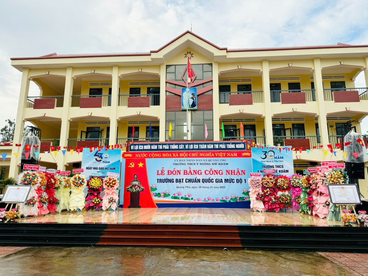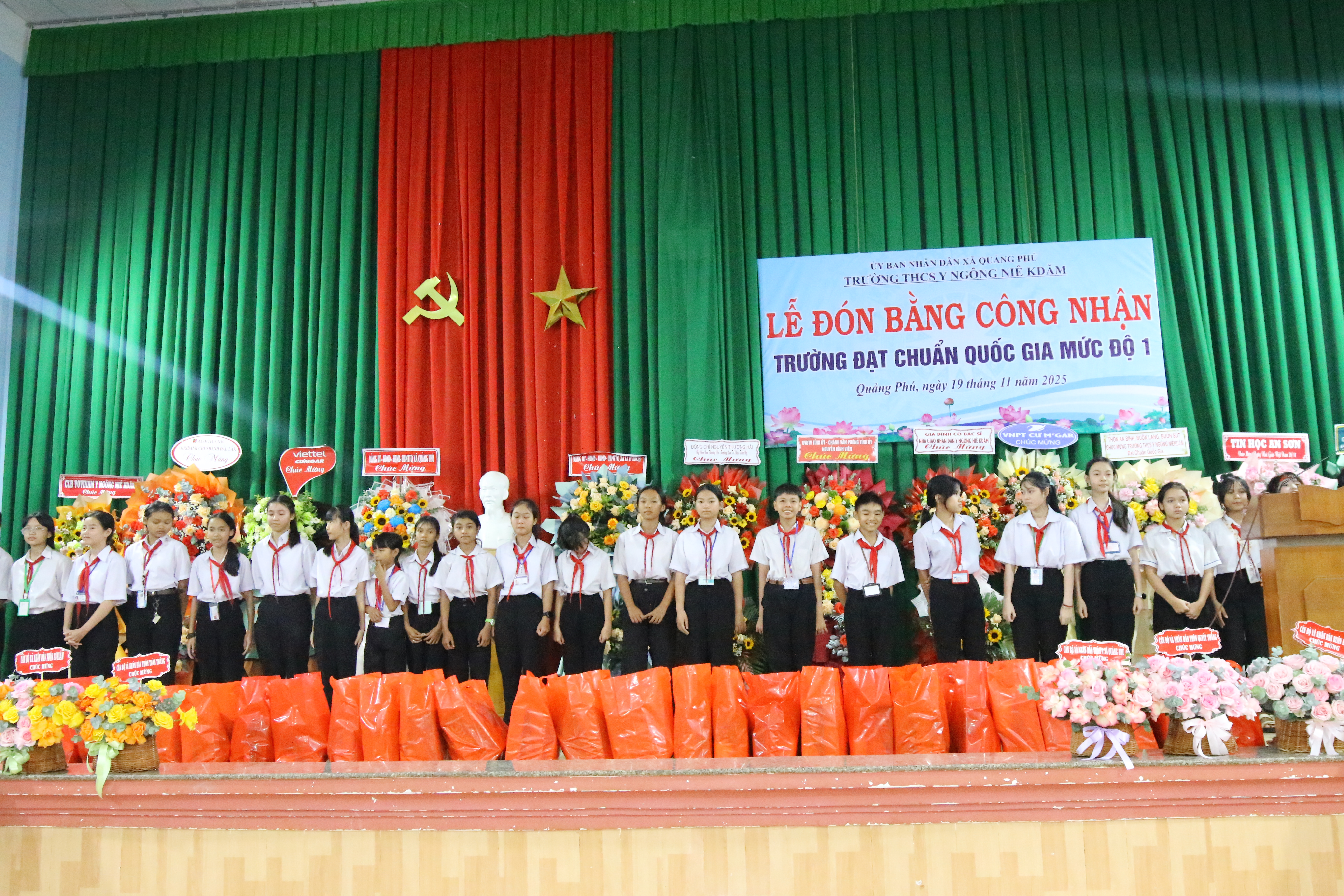 Tại buổi lễ, đại diện Sở và chính quyền địa phương đã trang trọng trao Bằng công nhận Trường Đạt Chuẩn Quốc Gia mức độ 1 cho nhà trường. Khoảnh khắc lá cờ đơn vị chuẩn quốc gia tung bay trên sân trường đã đánh dấu bước phát triển quan trọng, mở ra hướng đi mới vững chắc và đầy kỳ vọng cho THCS Y Ngông Niêkđăm.