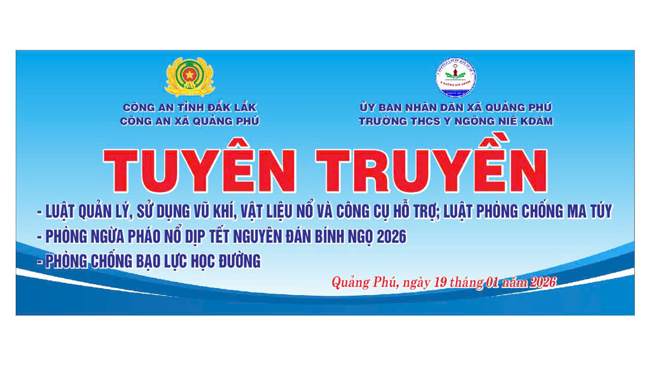 Ngày 19/01/2026, Công an xã Quảng Phú phối hợp với trường THCS Y Ngông Niê Kdăm tổ chức buổi tuyên truyền, giáo dục pháp luật cho hơn 1.000 học sinh Trường THCS Y Ngông Niê Kđăm.